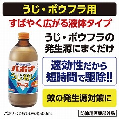 液剤なので、うじ(ハエの幼虫)、ボウフラ(蚊の幼虫)の発生源にすばやく拡散し、駆除します。蚊の発生源対策に。