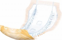 排尿量約4回分のパッドタイプ。片手で楽らくワンタッチオープンであてやすい。人間工学に基づいたヒューマンカーブ形状で股間部にフィットしてズレにくい。pHコントロールパルプ採用により弱酸性・抗菌・消臭。