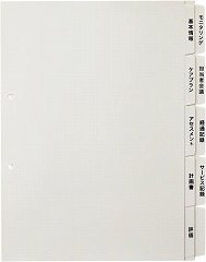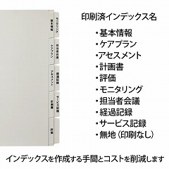 医療、介護、福祉施設向けたすけあシリーズ。インデックスを作成する手間を削減。利用者カルテの主要な項目が印字済みインデックス。