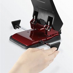 中空刃で50枚を軽あけ!金属製のダブルゲージで用紙を双方から支え、センター合わせが簡単!台座の上に用紙が載り、安定した穴あけ作業を実現。底面には滑り止め付きで用紙の差し込み時や穴あけ時にずれにくい。