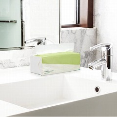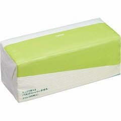 たっぷり300枚入りで取り換えの手間が省ける、パルプ100%ペーパータオル。経済的なスリムサイズ。