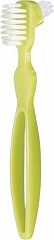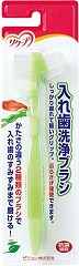 入れ歯の溝などがしっかり磨けます。かたさの違う2種類のブラシですみずみまで磨けます。使用後は吊り下げて保管できます。