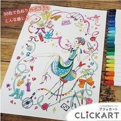 片手で使えるノック式のサインペン「クリッカート」。キャップの閉め忘れや紛失の心配がありません。空気中の水分を吸収するペン先が乾かないインクを採用しています。裏移りをせず、他の色と重ねてもにじみません。