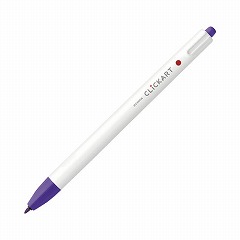 片手で使えるノック式のサインペン「クリッカート」。キャップの閉め忘れや紛失の心配がありません。空気中の水分を吸収するペン先が乾かないインクを採用しています。裏移りをせず、他の色と重ねてもにじみません。