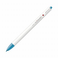 片手で使えるノック式のサインペン「クリッカート」。キャップの閉め忘れや紛失の心配がありません。空気中の水分を吸収するペン先が乾かないインクを採用しています。裏移りをせず、他の色と重ねてもにじみません。