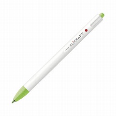 片手で使えるノック式のサインペン「クリッカート」。キャップの閉め忘れや紛失の心配がありません。空気中の水分を吸収するペン先が乾かないインクを採用しています。裏移りをせず、他の色と重ねてもにじみません。