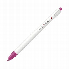 片手で使えるノック式のサインペン「クリッカート」。キャップの閉め忘れや紛失の心配がありません。空気中の水分を吸収するペン先が乾かないインクを採用しています。裏移りをせず、他の色と重ねてもにじみません。