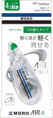 使い始めから使い切るまで、驚くほど軽い消し心地が続きます。新機構「エアータッチシステム」搭載の修正テープ「モノエアー」つめ替えタイプ