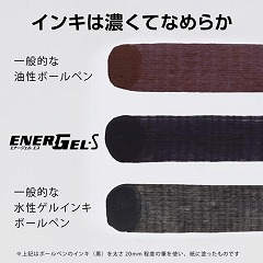 エナージェルインキ採用。軽くなめらかな書き味。濃くはっきりとした文字が書け、速記にも強く乾きも速い。