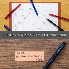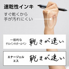 エナージェルインキ採用。軽くなめらかな書き味。濃くはっきりとした文字が書け、速記にも強く乾きも速い。