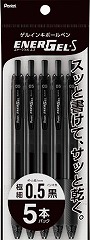 エナージェルインキ採用。軽くなめらかな書き味。濃くはっきりとした文字が書け、速記にも強く乾きも速い。5本パック。