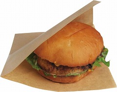 ラミネート加工未晒クラフト紙のバーガー袋。バーガー以外にも、サンドイッチや揚げ物等にも。
