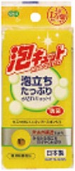 穴あき構造だからみるみる泡立ち、すばやく水切り!キズつけにくい不織布を貼りあわせているので汚れを落とし、中央のやわらかいスポンジ部分が細かい泡を立てます。スポンジ部分に抗菌剤を使用してます。