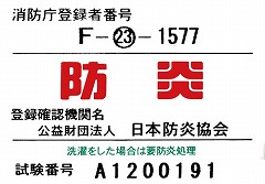 ●日本防炎協会試験番号/A1200191