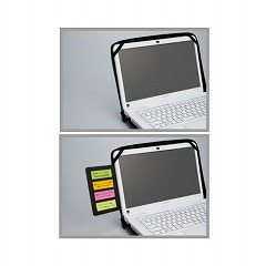 開けばすぐに作業ができるノートPCカバー。移動時には6つの多彩な収納ポケットで必要な小物を分別し、まとめて持ち運べる。スライド式の付箋貼り付けボード付き。目線を上げられる折りたたみ式のスタンドタイプ。