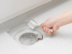 排水口などの細かい場所に軽い力ですみまで洗えるミニブラシ。握りやすく手になじむ柄なので軽い力で洗えます。