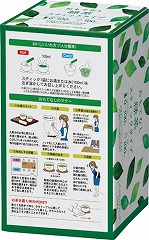 おもてなしのマナー表記がパッケージに記載されている、スティックタイプの緑茶です。配膳マナーが一目でわかるのでスマートにお茶出しができます!
