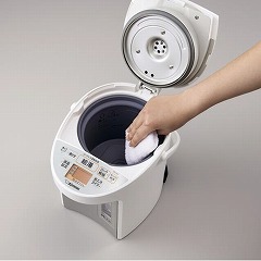 電気で沸かしてまほうびん保温のVE電気まほうびん。905Wスピード沸とうで早く沸きます。プラグをはずして給湯できるコードレス電動給湯で使いやすい!