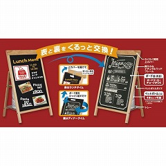 2Lペットボトルが重しになる転倒防止リバーシブルボード。掲示面は両面仕様でボード面をひっくり返すだけのカンタン入れ替え。チョーク&マーカー可。