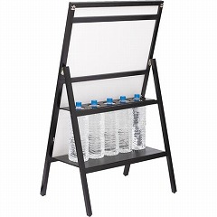 2Lペットボトルが重しになる転倒防止ポスタースタンド。風速15m/Sでも倒れない。たたんで収納もできます。A1サイズポスターだけでなく5mm厚までのパネルにも対応