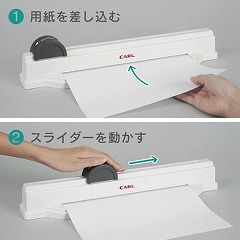 ルーズリーフがつくれるパンチです。スライドするだけでA4サイズ30穴の多穴に素早く対応。スライド時は30本のロット刃が順番に穴をあけます。ロット刃が1本ずつ用紙に穴をあけるため軽い力で操作できます。