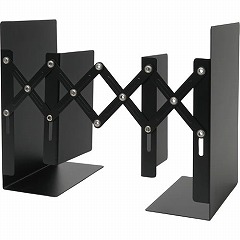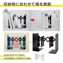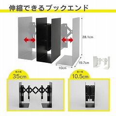 書籍の量に応じて開閉幅を調節できる伸縮型ブックエンドです。丈夫で耐久性の高いスチール素材は、堅固で形崩れしにくく、書籍の重さで生じるズレや開きを防止。背あてにより後方に書籍がおちることもありません。