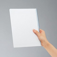 コクヨ独自開発の“新感覚やわらかリング”を採用したリングノート。きれいに切り離せる、マイクロミシン目入りのカットオフタイプ。「美しく書く」をサポートするドット入り罫線を採用しました。