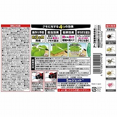 ●使用の目安/クモの巣作り予防に使用する場合、約3ヵ月持続(自社試験。使用環境により異なります。)クモの巣予防に使用する場合、噴射目安の1平方メートルあたり15‐30回使用で、1本で約30‐60平方メートルの範囲に使用できます。