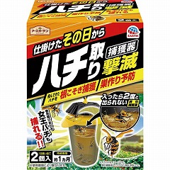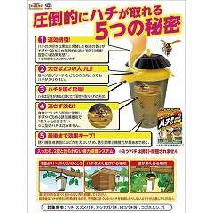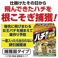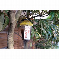 仕掛けたその日からお庭まわりに飛来したハチを駆除できる捕獲器。誘引捕獲液が身体にすばやく密着し、すばやく沈めて、一度入ったら逃しません。春先に飛び回る女王バチも捕れる。