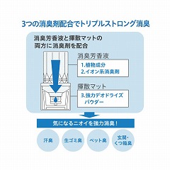 3つの消臭剤配合で、お部屋の臭いを強力消臭。置くだけ簡単、最後の1滴まで無駄にしません。