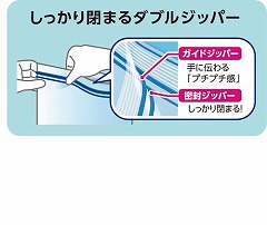 底マチ付きなので立てて使え、ダブルジッパーでしっかり密封します。