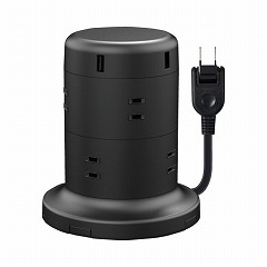 合計最大出力が4.8AのUSBポートを5つ備えたタワー型8口の電源タップです。USBポートや差込口は360度放射状に配しており、会議室の机などでの利用におすすめです。