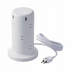 合計最大出力が4.8AのUSBポートを5つ備えたタワー型12口の電源タップです。USBポートや差込口は360度放射状に配しており、会議室の机などでの利用におすすめです。