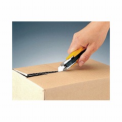 スプリングで刃が自動的に戻る、安心設計の開梱用カッター。別売りのフックS刃、オールメタルセーフティカッター替刃も装着可能です。刃は前後使えます。