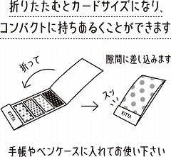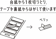 切れているから使いやすい。小さくて便利なマスキングテープです。表紙を折りたたむとカードサイズになるので、手帳のポケットに入れてもかさばらず持ち運べます。ラッピングや手帳のアレンジなどに