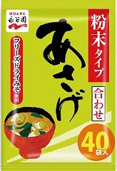 フリーズドライのみそを使った粉末タイプのおみそ汁です。2種類の米みそをブレンドした合わせみそに、わかめ、ふ、ねぎの具を加えました。