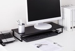 お買い得でマグネットが使えるスチール製の机上台。キーボードが収納できます。