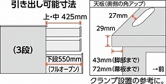 ●引出レール仕様/(上・中段)シングルレール(下段)ダブルサスペンションレール(フルオープン)