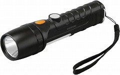 前照灯、側面等、赤色灯の3WAYタイプの、乾電池式LEDハンディライトです。防水性に優れているため、雨の中でも安心して使用できます。調光機能付きです。