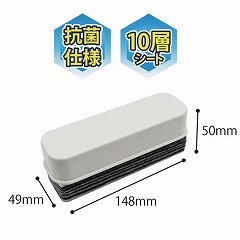 カバー部分に抗菌材を使用したホワイトボードイレーザーです。シートは10層のはがせるタイプで使い切り。汚れたらはがすだけで安心して使えます。