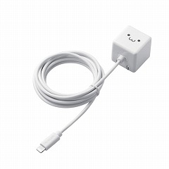 家庭用コンセントからLightningコネクタ搭載のiPhoneやiPodを充電できるLightningケーブル一体型のAC充電器。ケーブルが長い2m。顔つき“しろちゃん”モデルです。