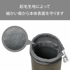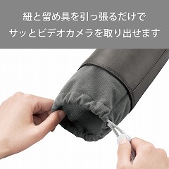 スリム設計でコンパクト。紐と留め具を引っ張るだけで簡単開閉できる、巾着型のビデオカメラ用インナーケース。