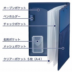 ●仕様/内側オープンポケット・名刺ポケット・ペンホルダー・チャックポケット・クリアーポケット5枚付き 背面メッシュポケット付き