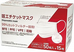 耳にやさしい、ふわふわ6mmゴム使用。ウイルス飛沫捕集効率試験・微粒子ろ過効率試験・バクテリア飛沫捕集効率試験:99%カット(一財)カケンテストセンター測定