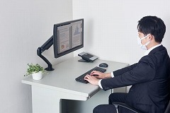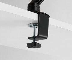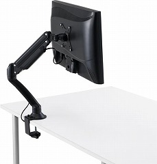 PCモニターを自由な角度や位置に調整できるモニターアームです。目線があがり姿勢改善の効果が期待できます。台座ない分デスク周りのスペースを有効活用。小さな力で思い通に動かせるガススプリング方式。