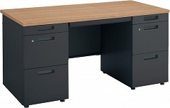 ワンランク上のコクヨ製スチールデスクシリーズ!本体色ブラック+木目色。