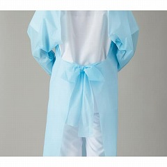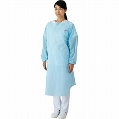 大量購入におすすめの袖付ポリエチレンエプロン!安いのでまとめ買いがお得。袖付なので異物混入の防止に役立つ。腰ひもでサイズ調整しやすいフリーサイズ。使い捨てだから医療介護向け用途でも安心。青色タイプ。