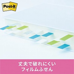 丈夫で使いやすいフィルムタイプのふせん。はってはがして何度も使えます。シーンや気分にあわせて8通りの色の組み合わせをご用意しました。