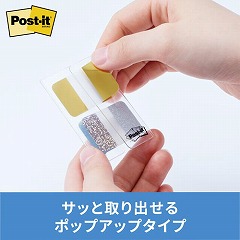 丈夫で使いやすいフィルムタイプのふせん。はってはがして何度も使えます。