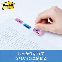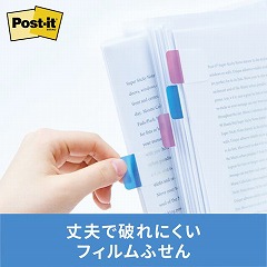 丈夫で使いやすいフィルムタイプのふせん。はってはがして何度も使えます。